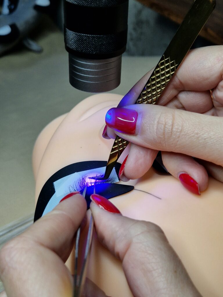 ▪️Aplicarea extensiilor fir cu fir pe manechin