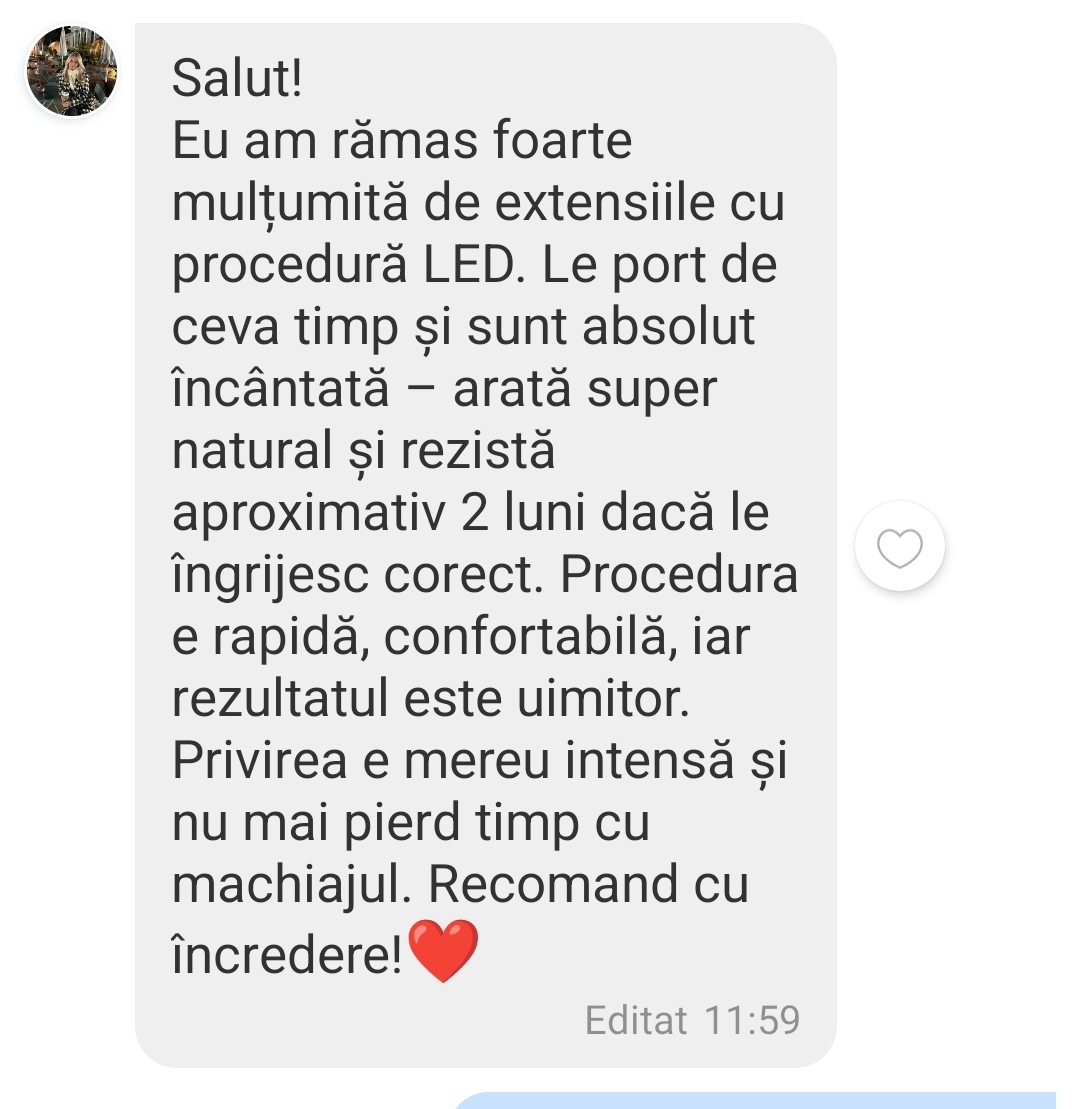 De când am descoperit noua tenologie LED a extensiilor de gene, m-a făcut să nu mai doresc să mă întorc la metoda veche,tradițională. M-a cucerit și îmi doresc să te ajut și pe tine să îi descoperi avantajele și beneficiile ei. Să te ajute să crești ,să treci la alt nivel și să faci lucru din plăcere.